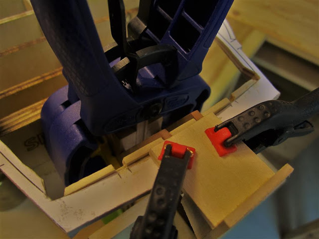 | Gluing the sills to the sashes. These are not the proper configuration, but will not be visible on the finished model. |